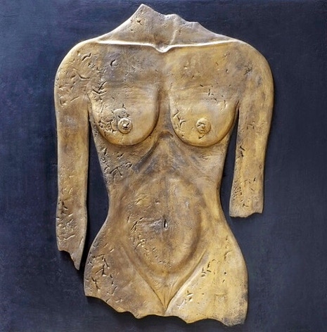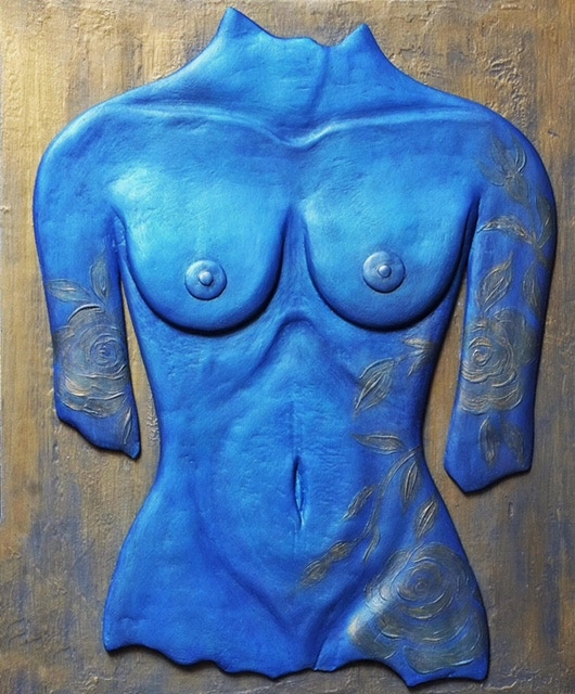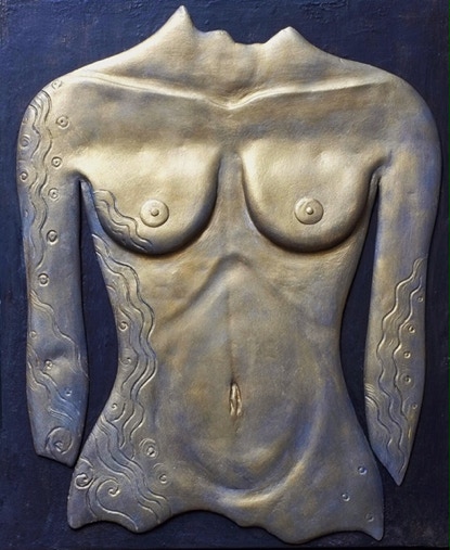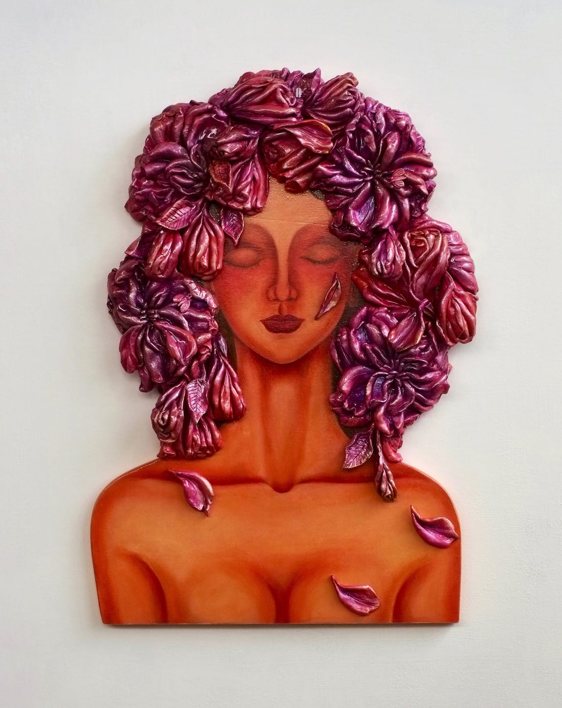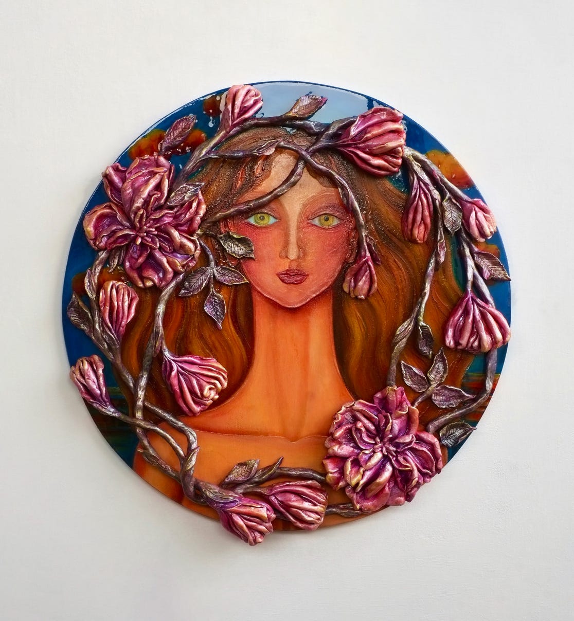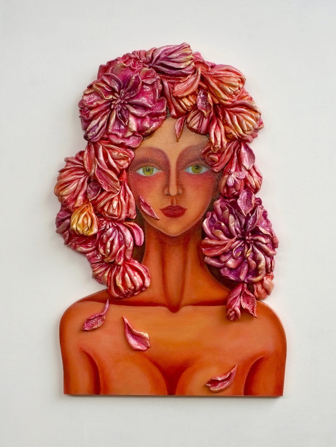 Air dry clay, acrylic relief appliquéd on cradled panel.